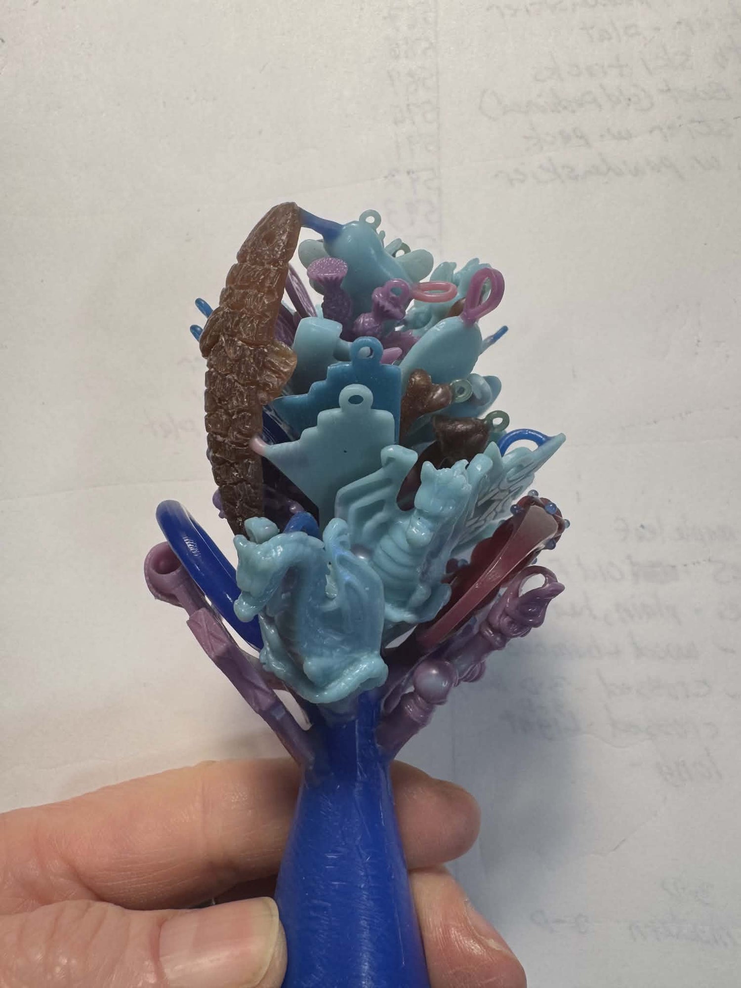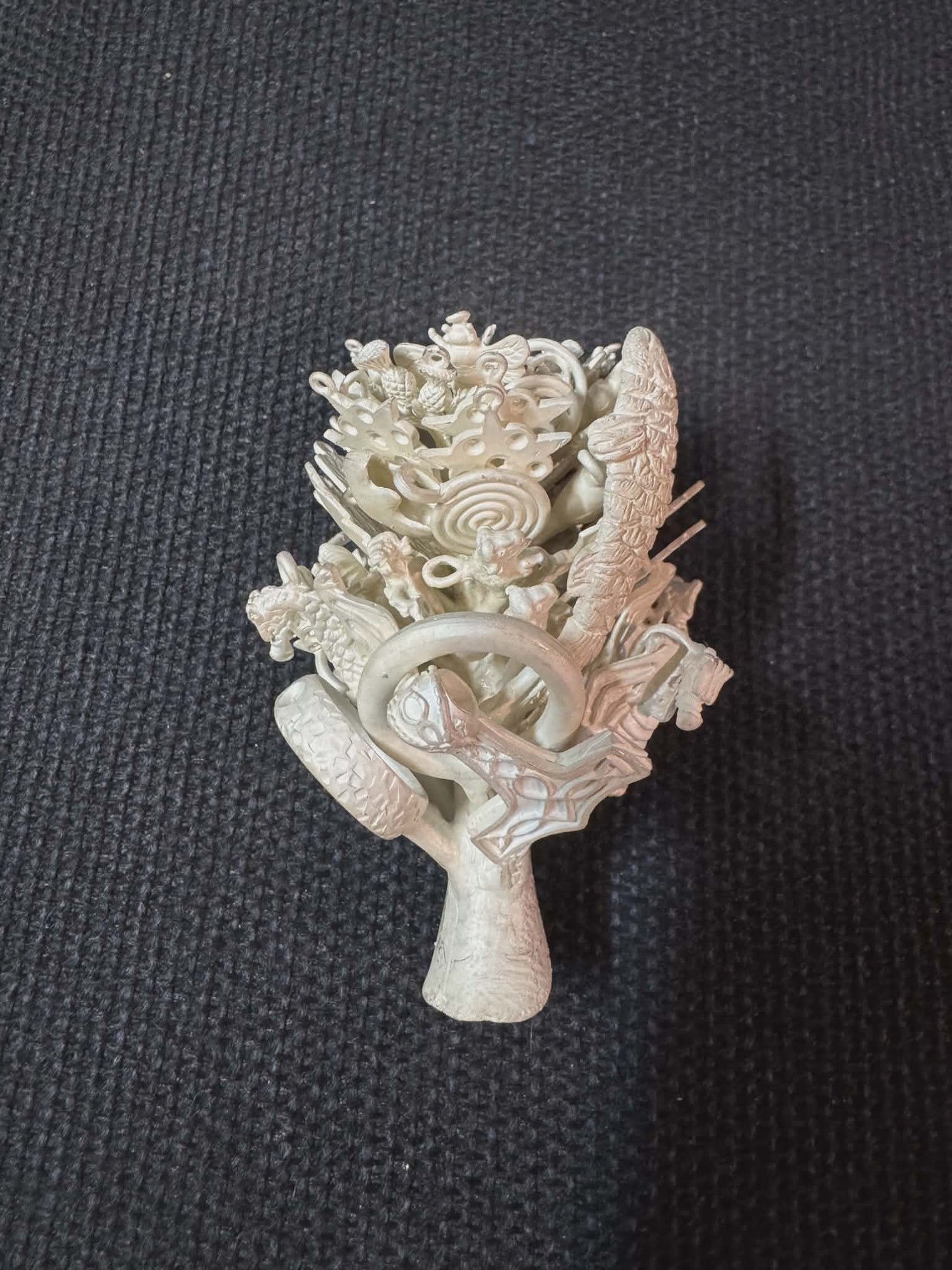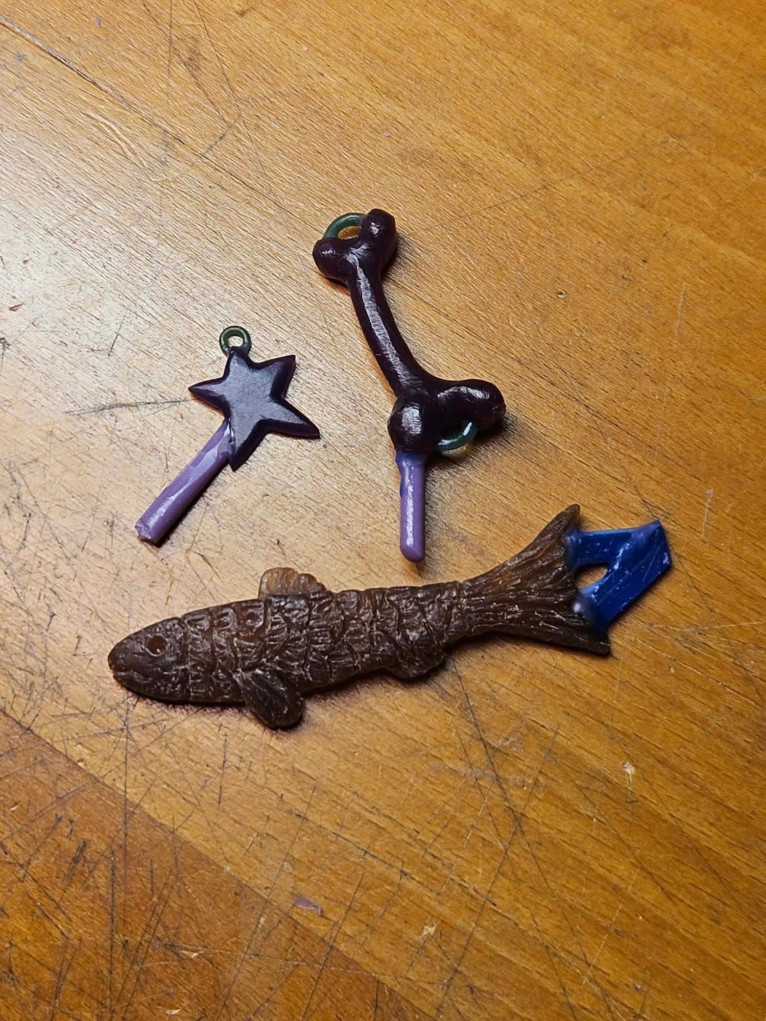 I COMPLETELY forgot to take a picture of the Fish at this stage, but you can see that the wax pieces have been transformed into solid metal, and cut off the tree! Now it's time to sand and file off the sprue, and any other rough bits on the surface.